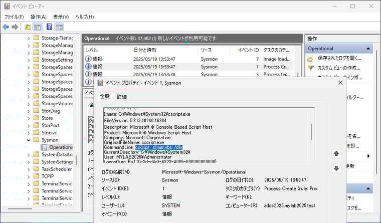 画面3 Sysmonにより記録されたVBScript使用の痕跡
