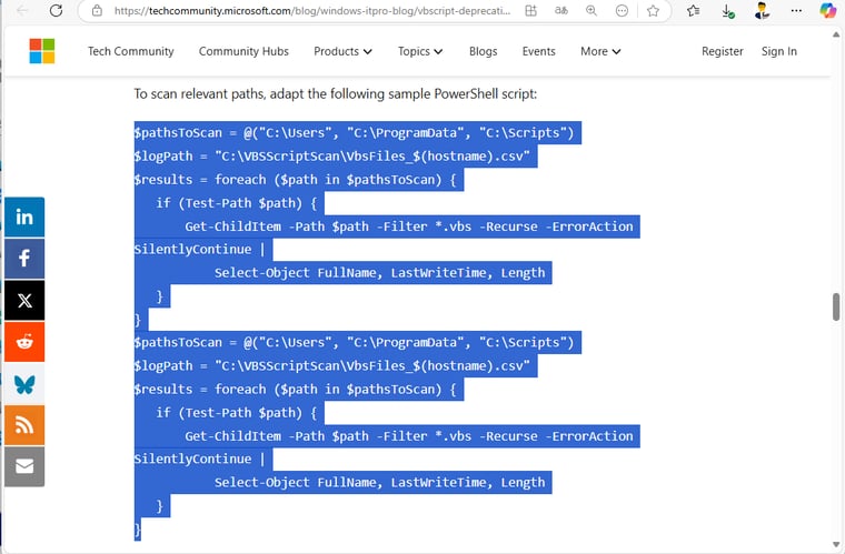 VBScript deprecation: Detection strategies for Windows (May 17, 2025)|Windows IT Pro Blog(Tech Community)